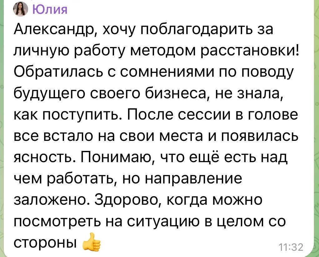 Для меня это была не магия, а точечная работа. Но видеть, как человек всего за одну встречу преодолевает барьер, который месяцами не давал ему двигаться вперёд, — это бесценно. Она не просто «справилась со страхом», она запустила свою профессиональную жизнь.